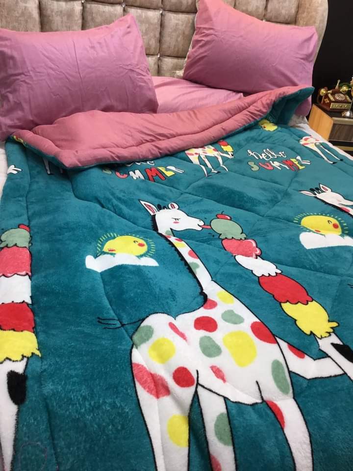 لحاف قطيفة مطبوع + ضهر موهير، قطع فاخرة وناعمة لصغارك.